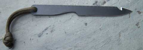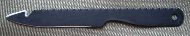 Okay, so it's a piece of a hacksaw blade. The other day I stopped into my local hardware store, and saw a 10 pack of hacksaw blades on sale for $1.99. That got me to thinking about a very small blade that could be packed in my survival kit.