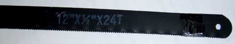 Hacksaw blades are VERY hard, high-carbon steel. They take and hold an edge very nicely, but can be brittle, so you don't want to make your blade too long, and it can't take a lot of abuse, but these have a lot of good uses in a survival kit. Each blade has a hole at each end. I figured I can get two blades out of each hacksaw blade (I could get three out of the length, but I want the hole at the end for lanyards, etc). That gives me 20 or more mini-survival blades for less than 10 cents each.