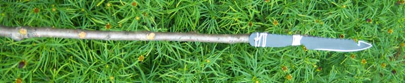 The little indent I made at the front of the handle helps when holding the blade in your hand, but is also used to help secure the blade to your spear shaft along with the lanyard hole at the rear.