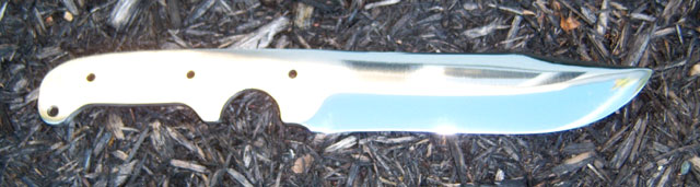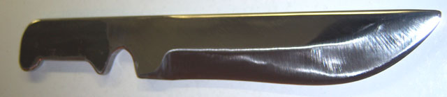 Here it is rough cut and ground from 1095 bar stock (1/4" thick x 2" wide stock).