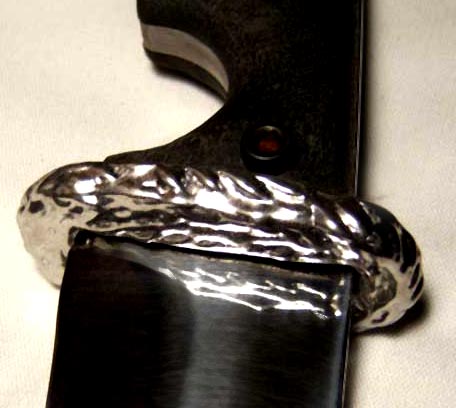 Here's a close-up of a guard I'm working on. It's a metal casting in a lead-free pewter alloy. I've been using a Lee lead furnace to accomplish the melt, and making clay molds to pour into. This is not finalized, but gives an idea of what I'm trying to accomplish.