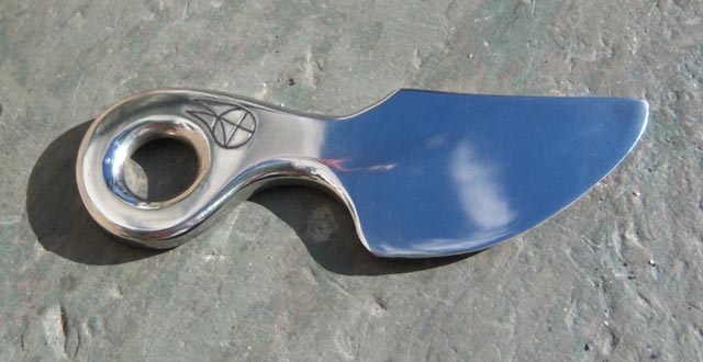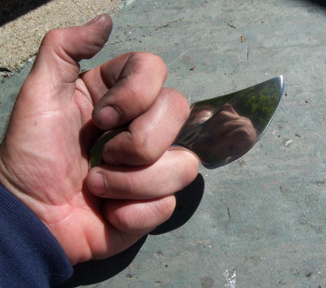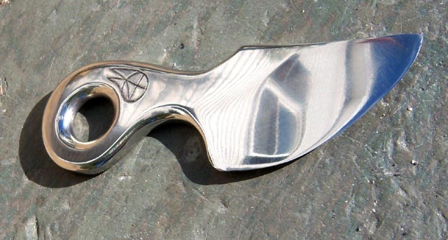 And here’s the custom necker I just finished. It’s ATS 34, so it won’t rust on me. It’s also ¼” thick which is absurdly thick for a necker, but it feels nice and hefty in the hand. It’s also scary sharp.