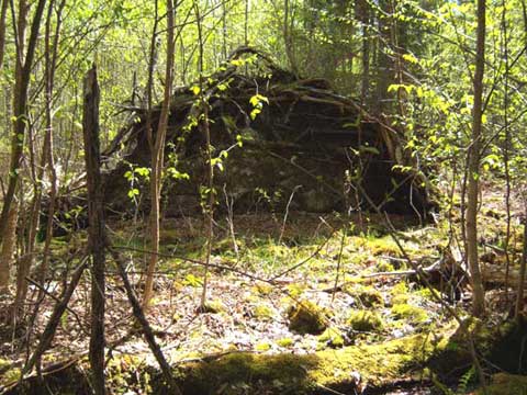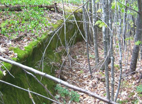 This moss covered rock ledge is a shelter just waiting to happen. Just look at all your roof timbers and leaf cover just lying there!