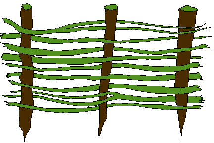 If you don't have any hooks and line, then I recommend a "fish fence". A "fish fence" is just what it sounds like. It's a fence that you make out of sticks that will corral the fish for you. Below, you'll see a couple sections of fish fence. As you can see, the smaller twigs are woven back and forth between the posts, which holds it all together nicely. The denser the better, as long as water can flow through, and fish cannot! This is built on land in sections, and then inserted in a likely waterway by pushing the posts into the mud at the bottom.