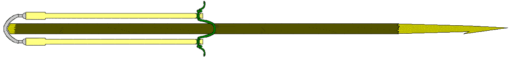 A really useful tool for survival would be a fish spear. This is typically a much thinner tool (about 1" in diameter), and has a very sharp tip with barbs to hold on to your catch. These barbs are relatively easy to whittle into the tip, and are well worth putting there. A survival situation is not the time that you want to experience that, "one that got away" story!! This can be used as a Hawaiian Fishing Spear (shown below) if you have a set of slingshot bands.