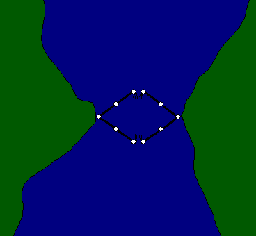 If the fish are moving in both directions, you may want to make a "corral" that will catch in both directions as shown below. If you have built your fencing in sections, it's easier to try different configurations to see which works best for you.