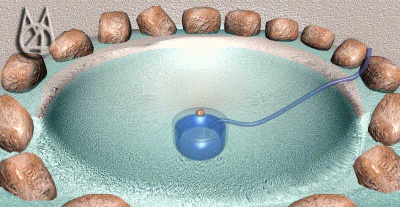 A view from the top. From this angle, you can see the pebble in the middle, centered over the collection vessel.