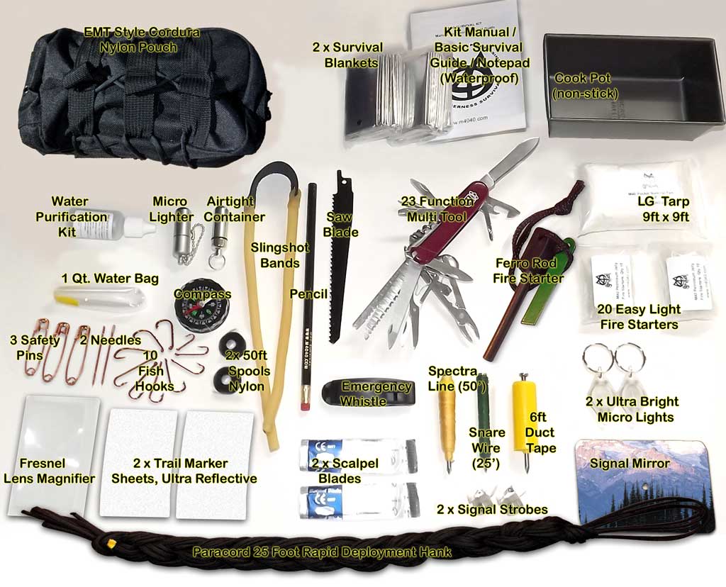 Note: If you order this kit along with other gear from the individual kit items section (eg: extra flashlights, strobes, stove, survival blankets, etc), I will pack it all in the kit when possible.