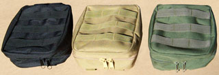 Cordura MOLLE Gear Pouch High quality, heavy cordura nylon belt pouch. This pouch is a bit bigger than the Double pouch used on the standard kit. I use these on my 'Football' and 'Double Trouble' kits. They are great for those who want to carry a kit with some extra gear, food, etc. These have multiple elasticized retaining straps on the inside to hold gear securely, and plenty of MOLLE loops on the outside to hold additional gear. I include 6 feet of paracord that can be used as a compression strap to lace your gear up tight (see picture). This means that you have a highly adaptable kit pouch that you can trim to the minimum, or pack to the gills! |